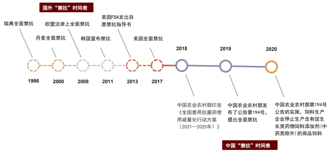 正因如此,“限抗”“禁抗”成了養(yǎng)殖業(yè)綠色發(fā)展的必然趨勢,全球很多國家陸續(xù)推動了各自“禁抗”進程,我國也不例外。