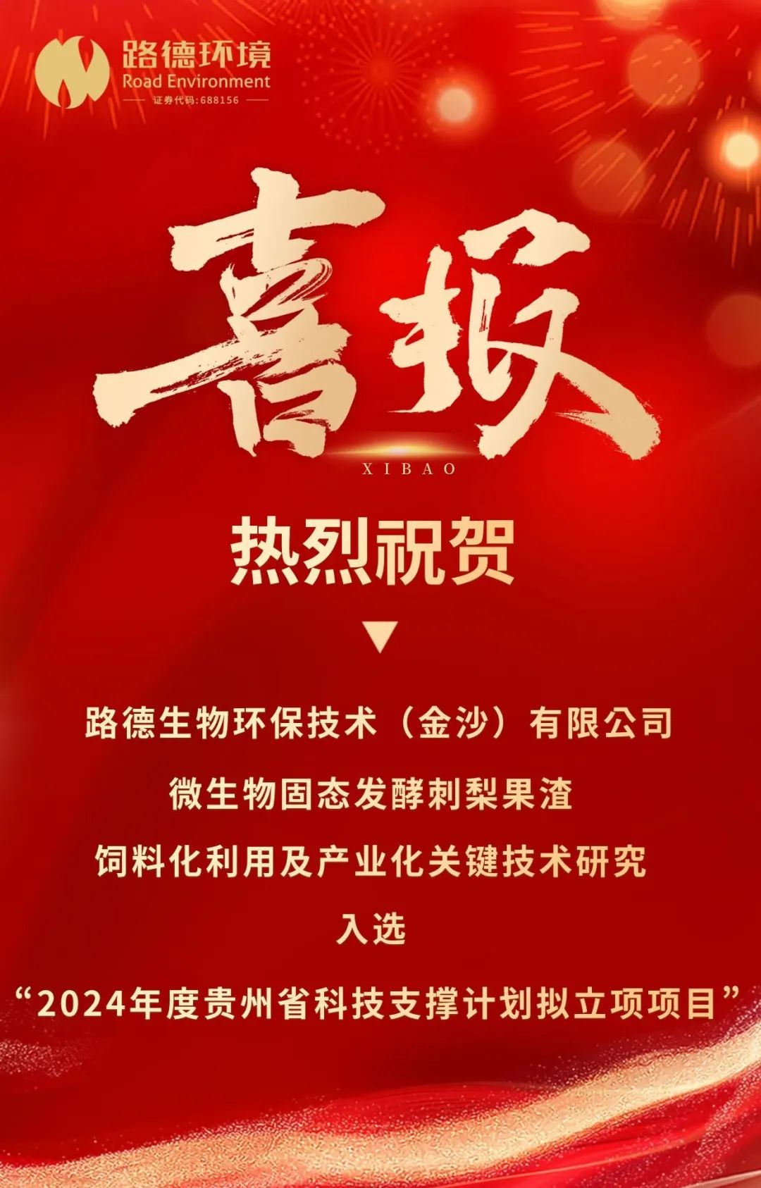 近日,貴州省科學(xué)技術(shù)廳公布了省科技計劃擬立項項目,路德環(huán)境旗下子公司——路德生物環(huán)保技術(shù)(金沙)有限公司承擔(dān)的“微生物固態(tài)發(fā)酵刺梨果渣飼料化利用及產(chǎn)業(yè)化關(guān)鍵技術(shù)研究”項目,入選“2024年度貴州省科技支撐計劃擬立項項目”。